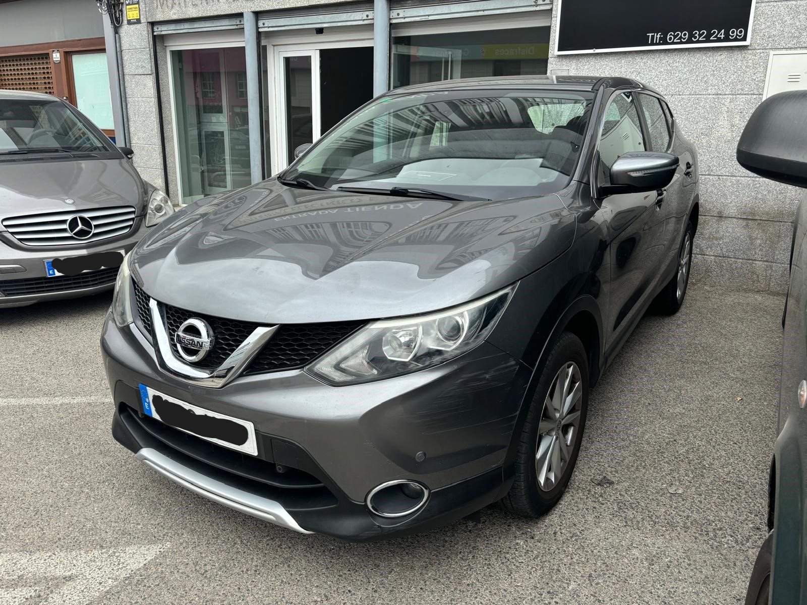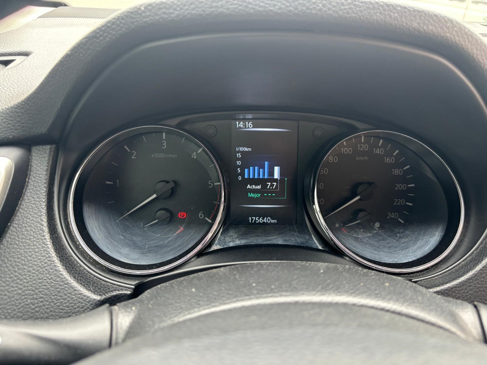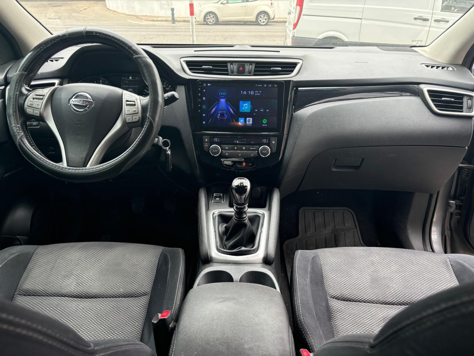 Nissan Qashqai 1.6 diésel 131cv 6/2.014, 175.000kms, gris metalizado, llantas de aluminio, sistema de navegación con pantalla táctil, sensores de aparcamiento, cámara de marcha atrás, volante de piel multifuncional, control de velocidad, luces diurnas de led, climatizador automático bizona, calefacción en los asientos, apoyabrazos central, faros antinieblas, Bluetooth, conexión auxiliar y usb, control de estabilidad, asistente de conducción, sensor de lluvia y de luces, regulación lumbar, cromado exterior, sensor de presión de neumaticos, espejos eléctricos plegables, sistema isofix,…